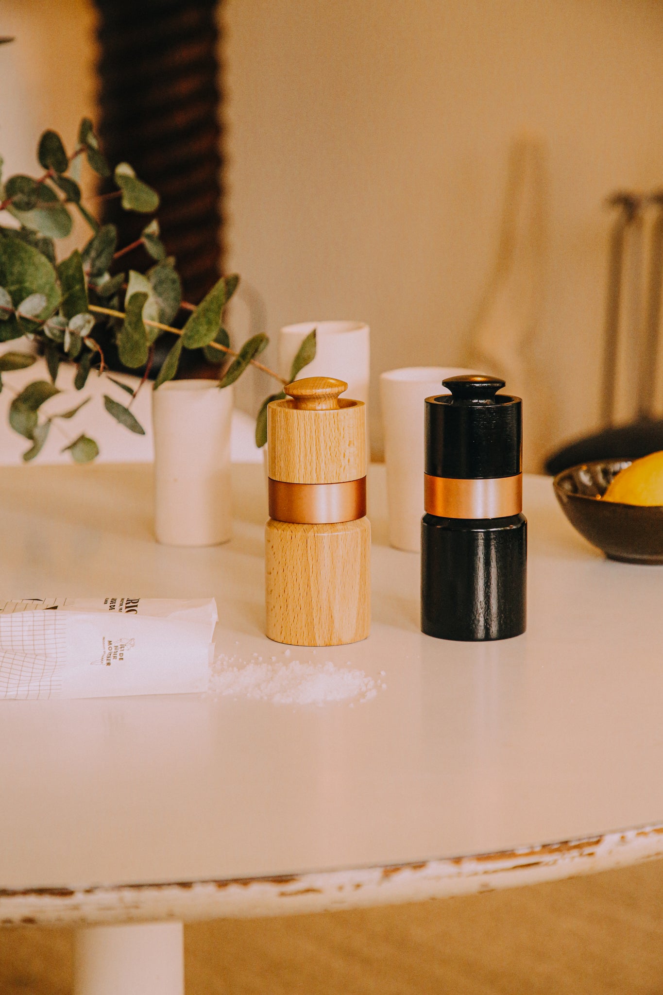 Élégants et intemporels, nos deux moulins (noir & naturel) font la paire pour habiller vos tables et proposer à vos convives les deux condiments essentiels : sel & poivre.